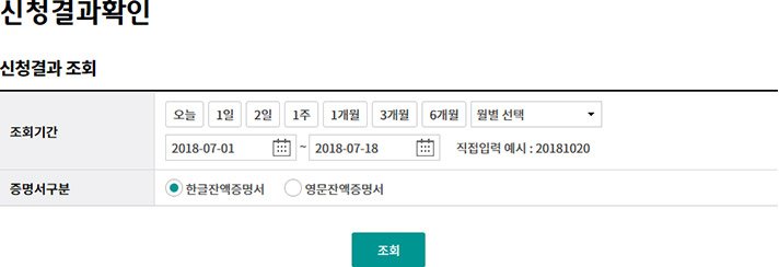 Step 1. 조회기간, 증명서구분 값을 선택 후 조회버튼을 클릭합니다.