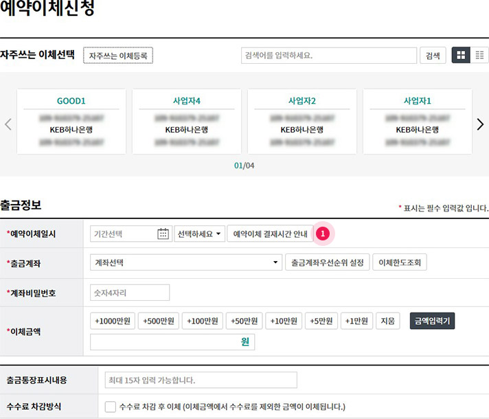 ① 예약이체 일시