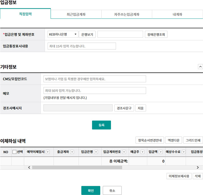 국내대량송금신청