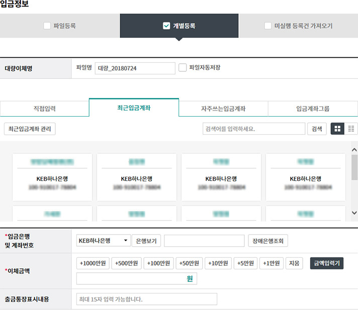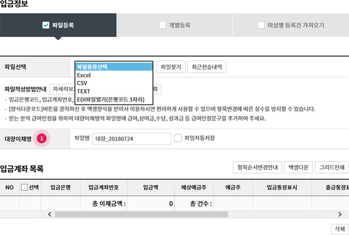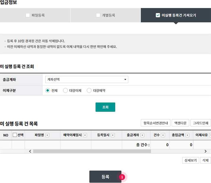 대량이체 등록