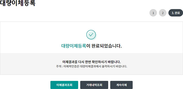Step 5. 대량이체등록이 완료 됩니다.
