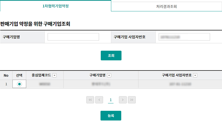 Step 1. 약정할 구매기업을 조회한 후 '등록'버튼을 클릭합니다.
