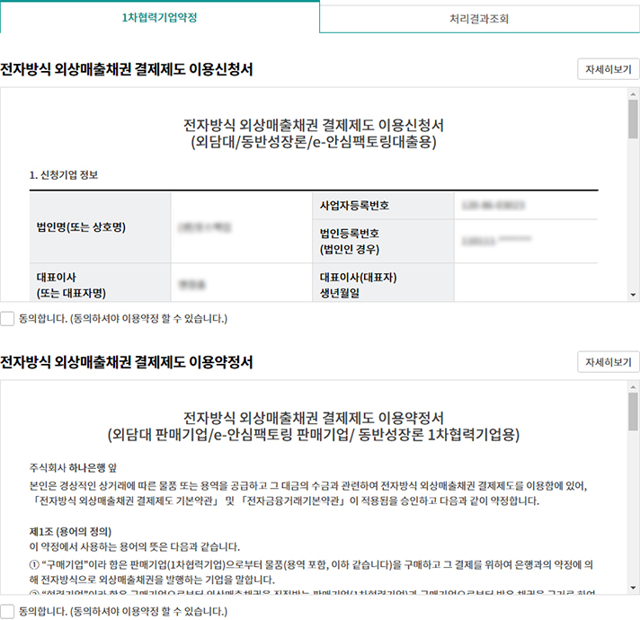 Step 3-1. 이용신청서 및 약정서 등을 확인 후 '동의합니다.'를 체크합니다.