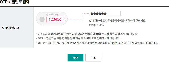 Step 3-2. OTP 번호 및 인증서 암호를 입력합니다.