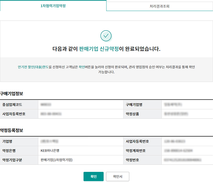 Step 4. 판매기업 신규약정 완료 화면입니다.