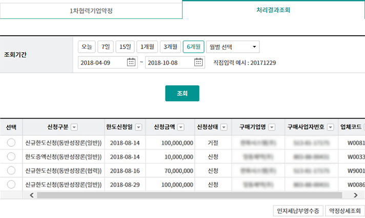 Step 5. 신규약정 및 증액신청 처리결과를 확인 할 수 있습니다.
