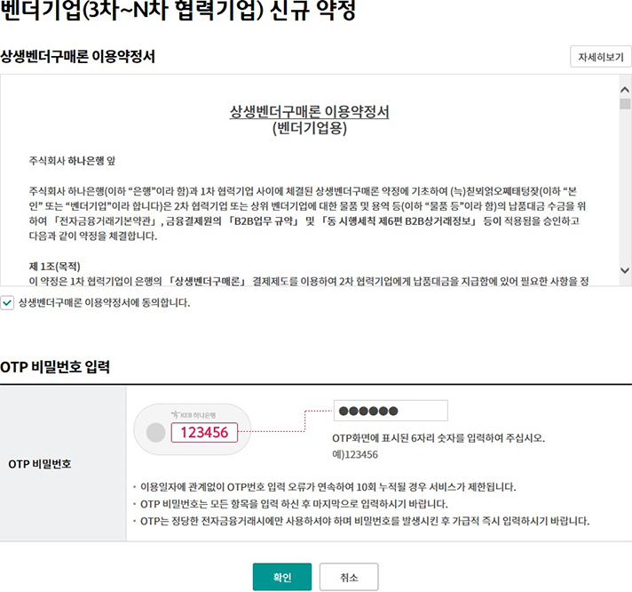 벤더기업(3차~N차 협력기업)신규 약정