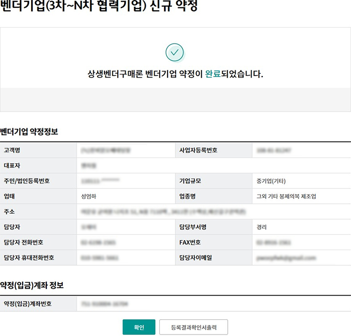 Step 3. 벤더기업 약정이 완료되었습니다.