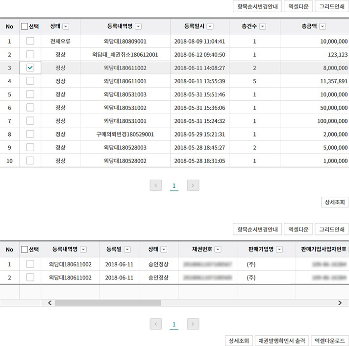 Step 1. 조회결과에서 해당 건을 선택하여 상세정보를 확인할 수 있습니다.