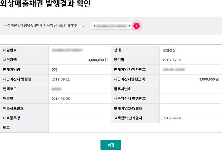 Step 3. 앞 단계에서 복수 건을 선택 시, 1건씩 구분하여 조회하실 수 있습니다.