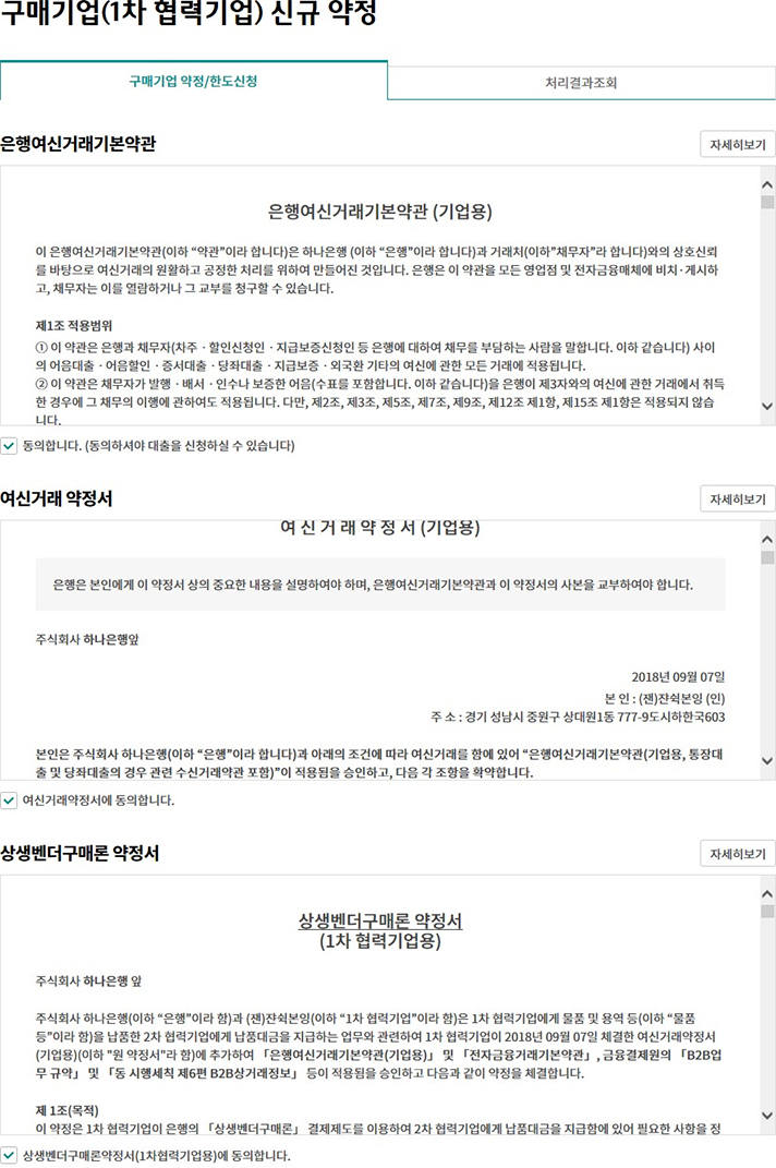 Step 4. 약관, 약정서, 동의서, 상품설명서의 내용을 확인한 후 동의여부를 체크합니다.
