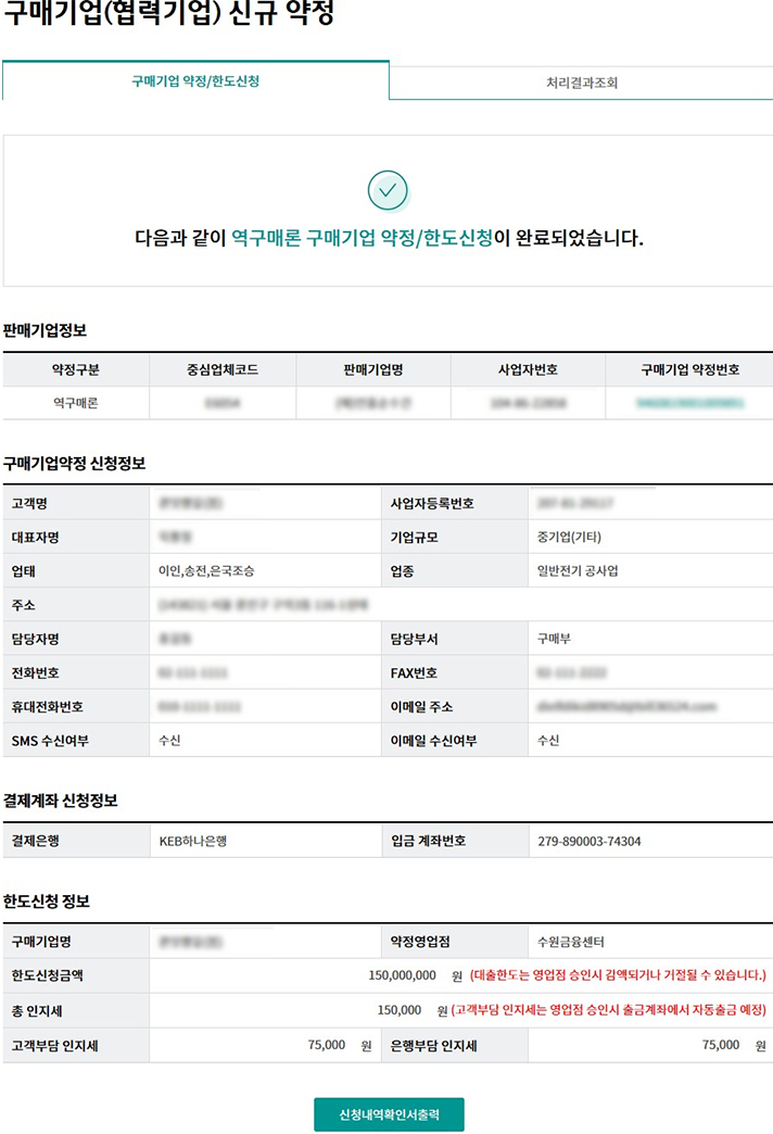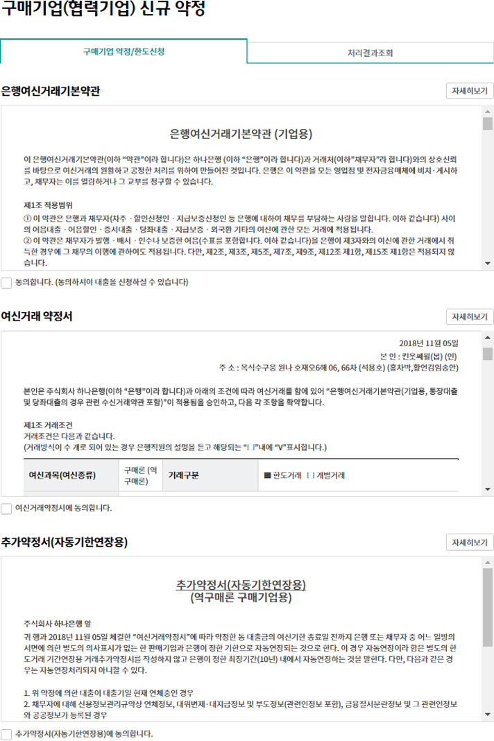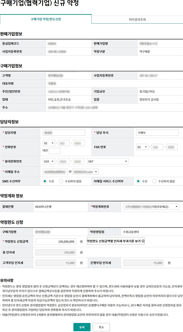 Step 3. 구매기업(협력기업)의 담당자 정보 및 약정계좌번호, 약정한도 신청을 입력합니다.