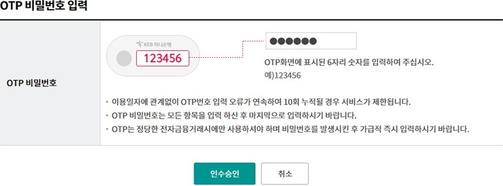 Step 5. OTP 비밀번호 및 인증서 암호를 입력합니다.