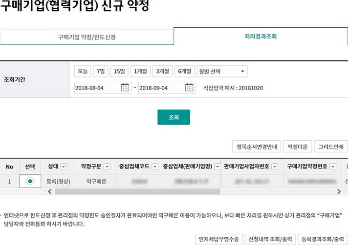 Step 7. 구매기업(협력기업) 신규약정의 처리결과를 조회합니다.