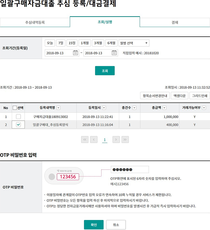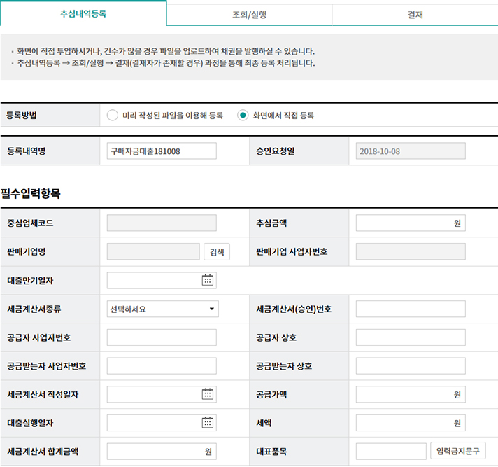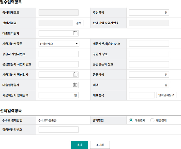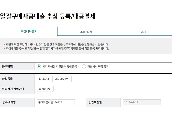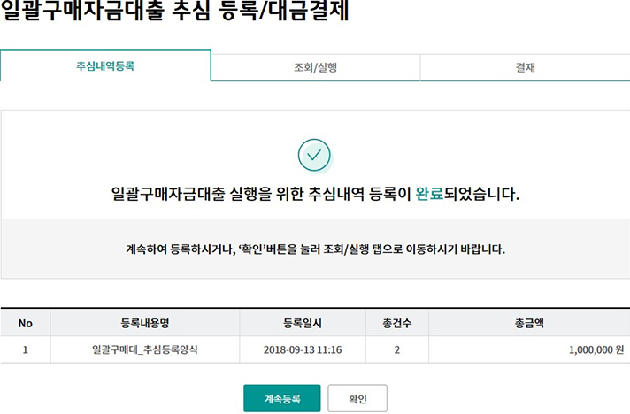 일괄구매자금대출 추심 등록/대금결제