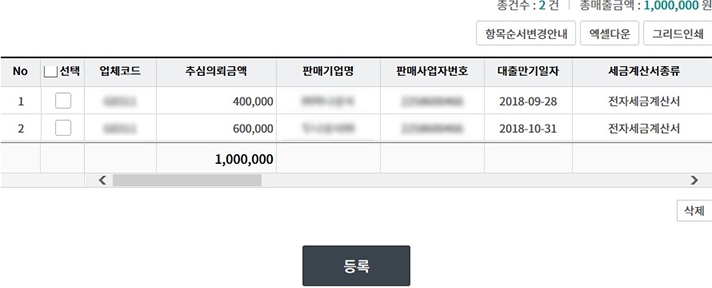 Step 4. 등록하신 내역을 선택한 후 등록 버튼을 클릭합니다.