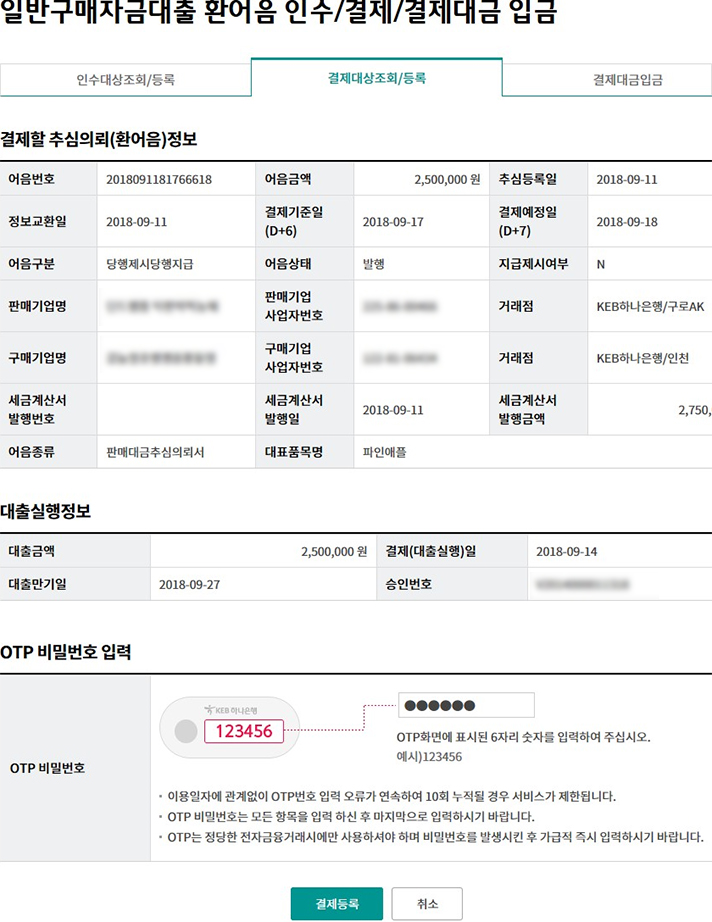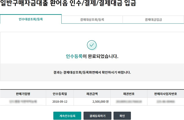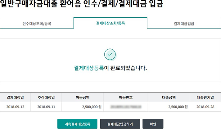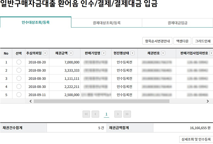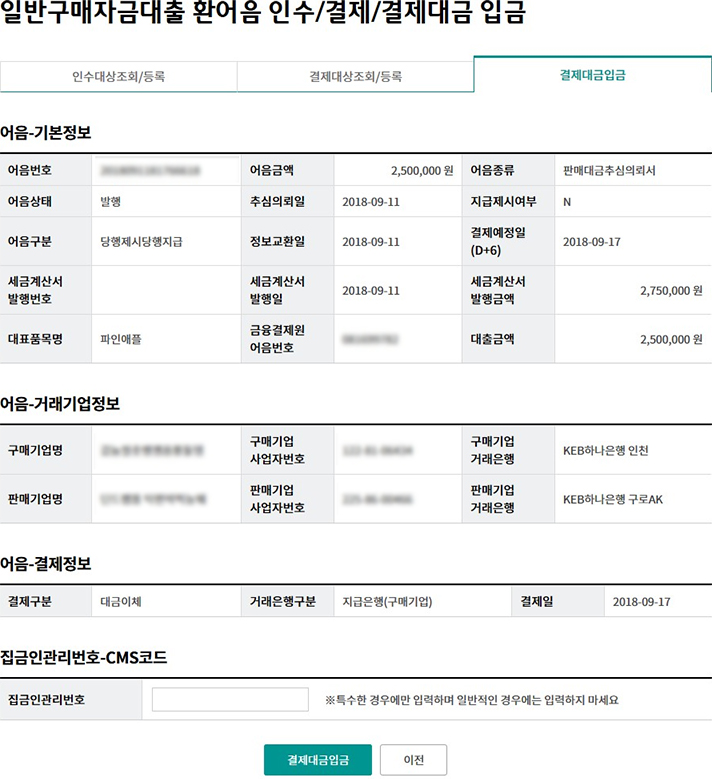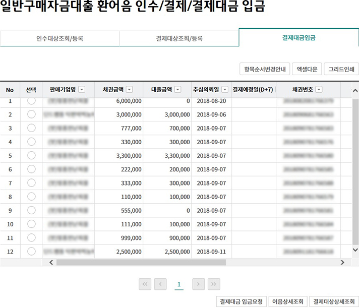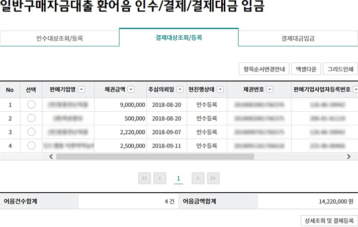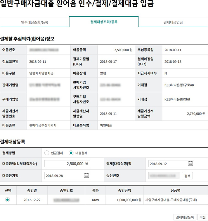 일괄구매자금대출 추심 등록/대금결제