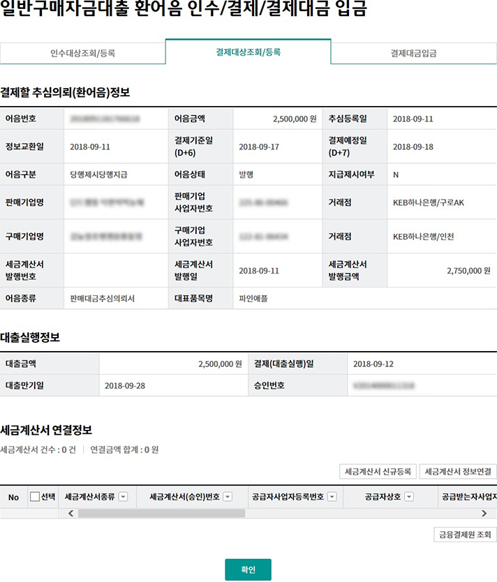 외상매출채권 조회/대출 실행(단건)