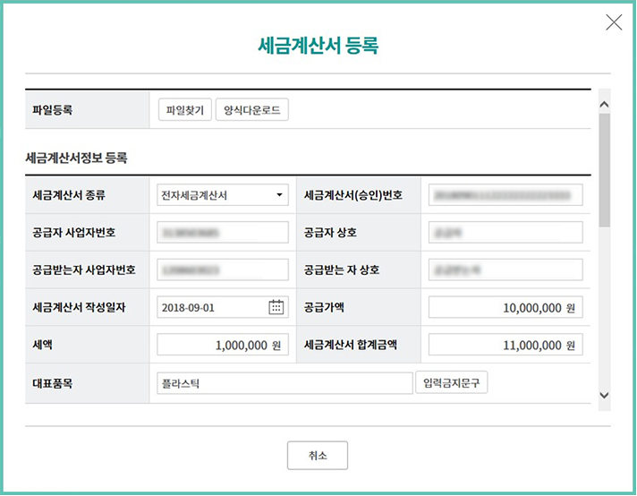 Step 7. 세금계산서 신규등록 화면입니다.