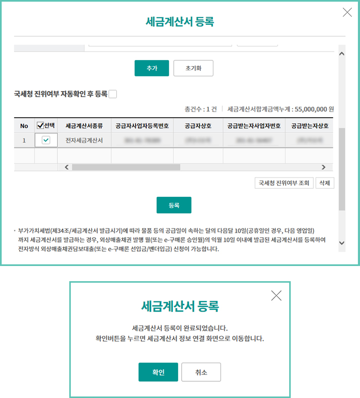 Step 9. 세금계산서 등록이 완료되었습니다.