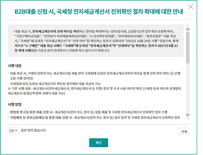 Step 1. 국세청 전자세금계산서 진위확인 절차 확대에 대한 안내를 읽고 확인합니다.