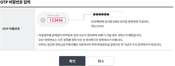 Step 5. OTP 비밀번호 및 인증서 암호를 입력합니다.