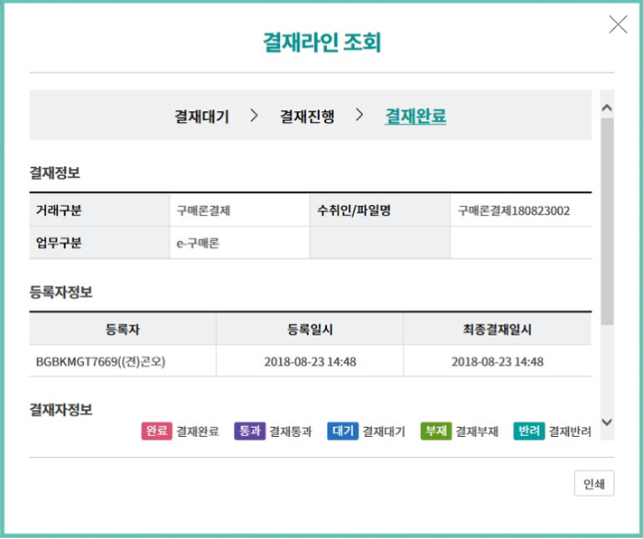 Step 9. 결재라인 조회 화면입니다.