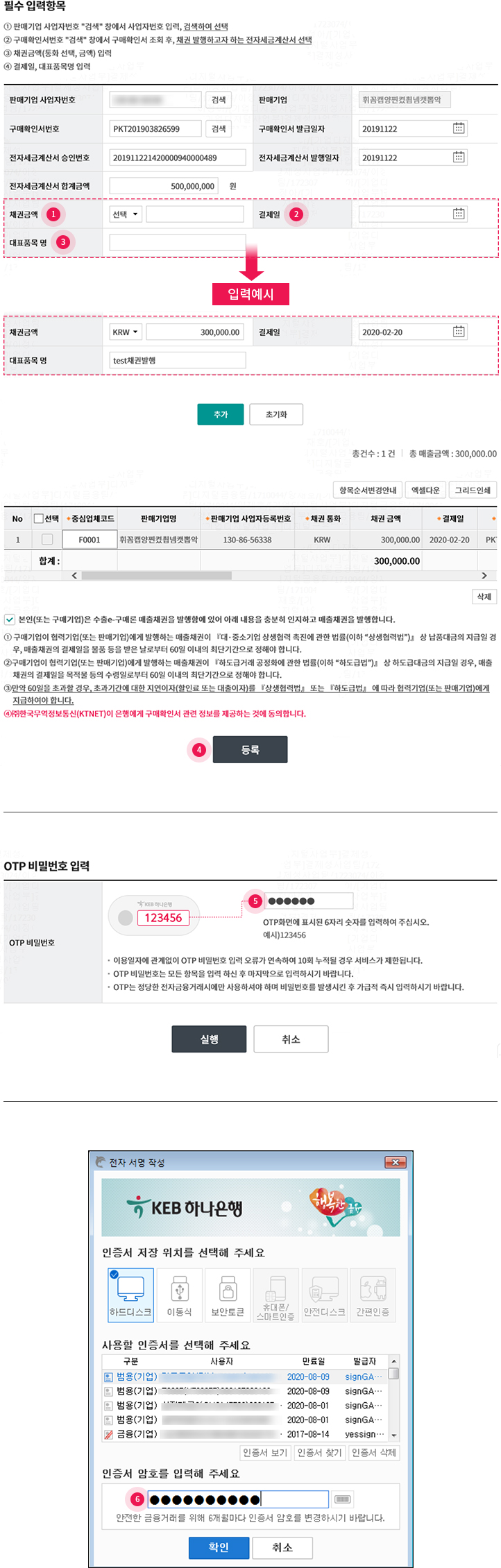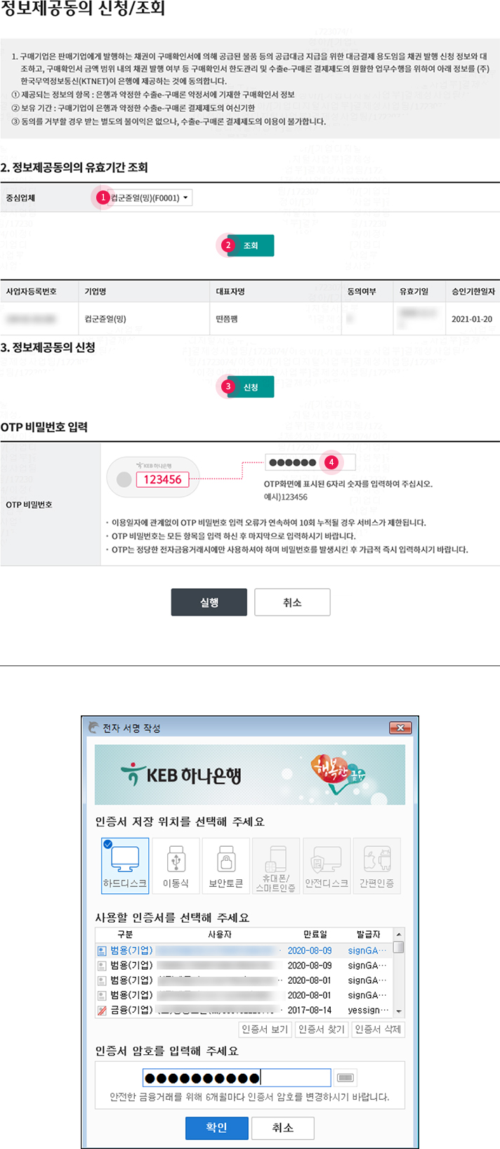 • 3. OTP비밀번호 & 인증서 암호 입력