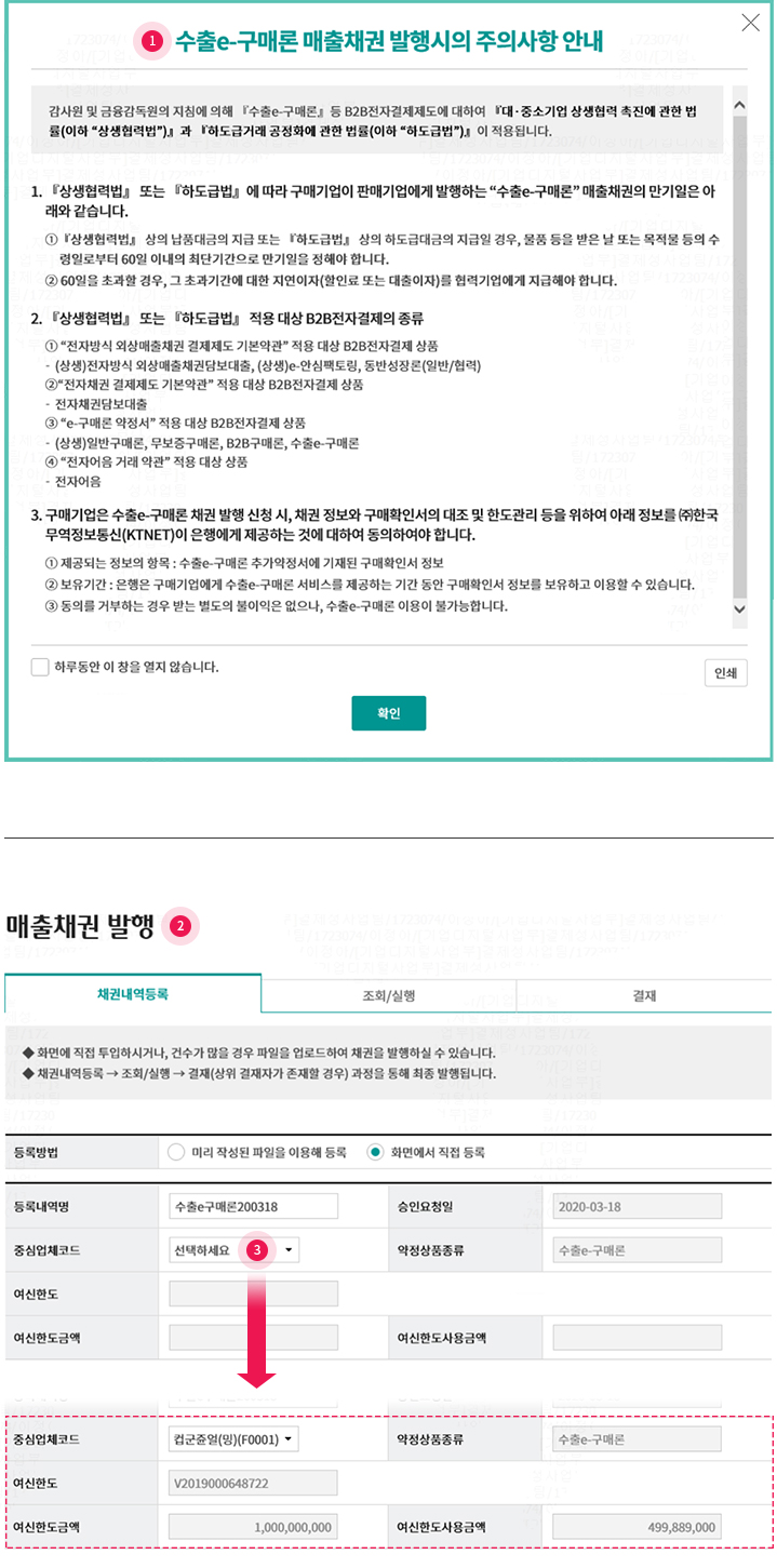 • 1. 매출채권 발행 주의사항 pop-up 확인