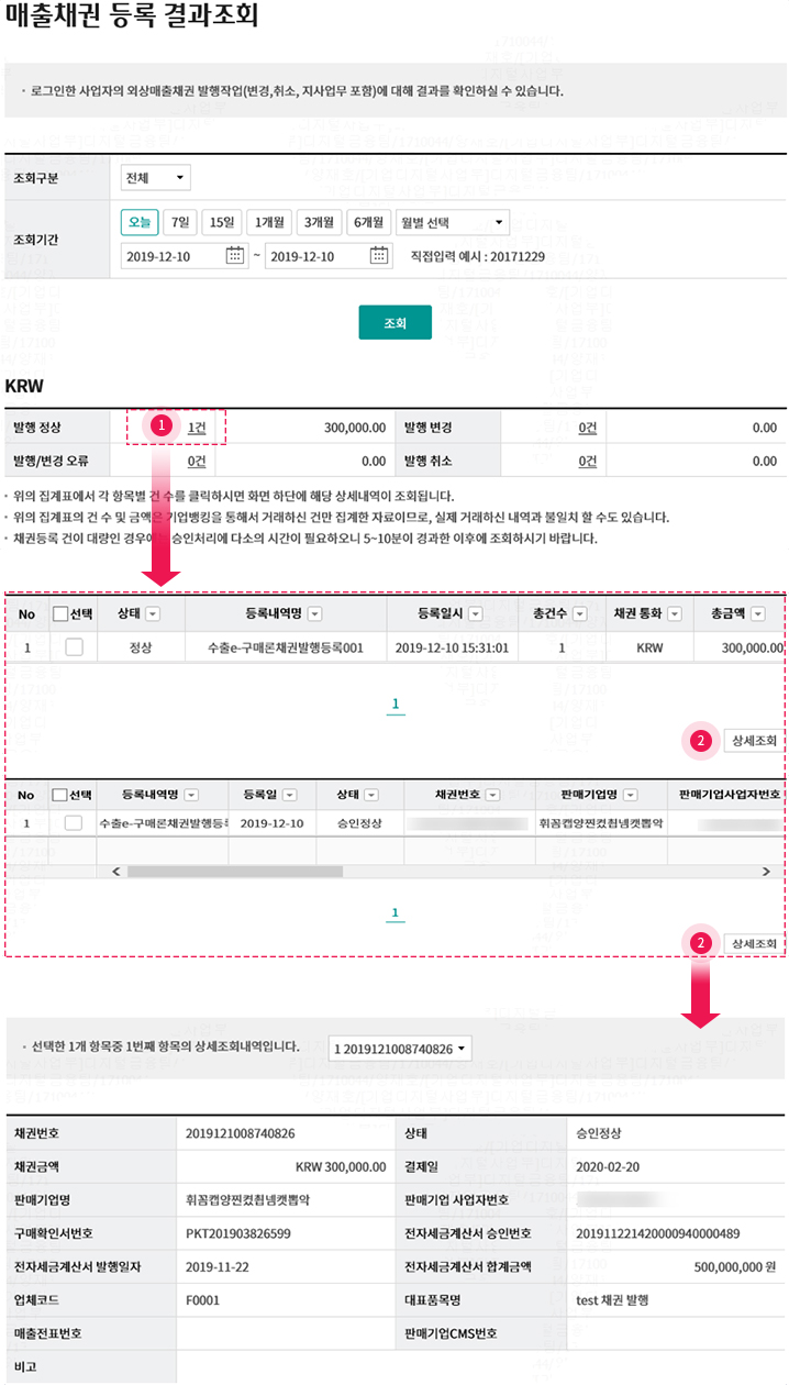 • 1. 채권 등록 결과 조회