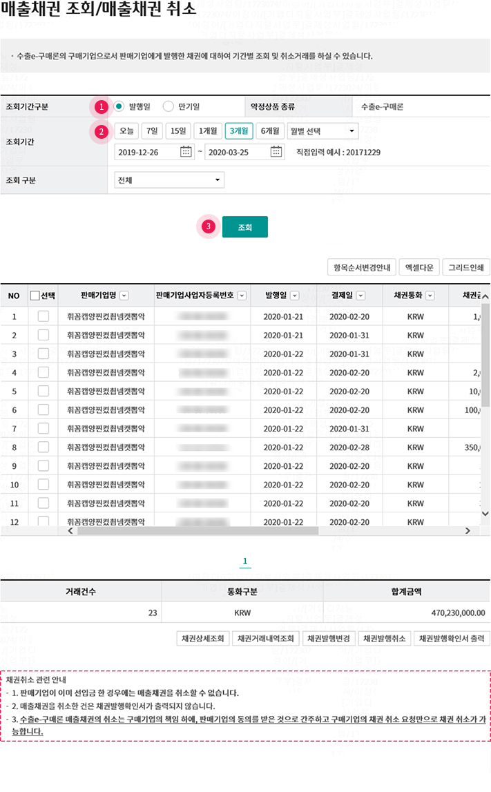 • 3. 채권발행 취소 가능하며, 구매기업 본인의 책임 하에 판매기업의 동의를 받은 것으로 간주하고, 별도의 취소 동의 절차를 진행하지 않음