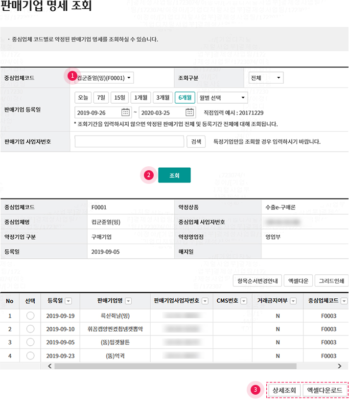 • 2. 중심업체코드 별로 조회 가능