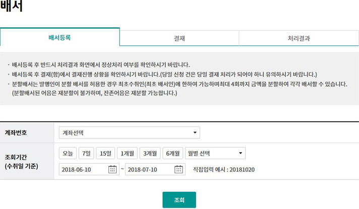 Step 1. 계좌번호, 조회기간을 선택하고 조회 버튼을 클릭합니다.