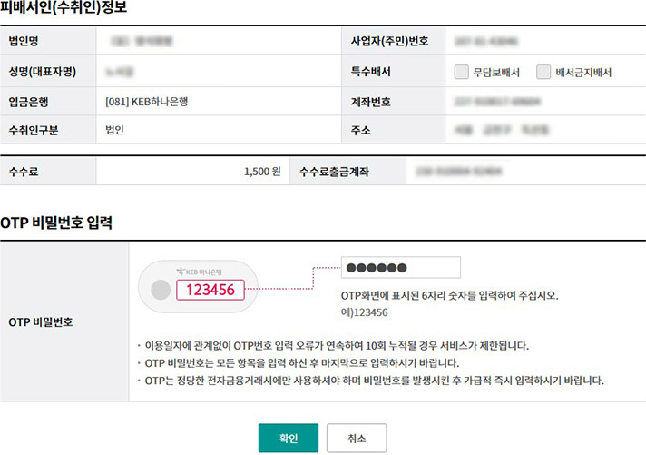 Step 5. OTP번호 및 인증서 암호를 입력합니다.