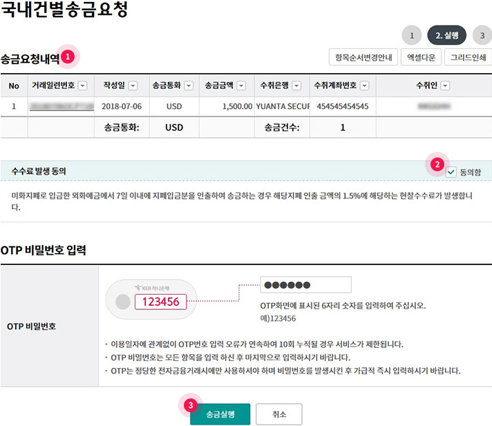 Step 4. 송금요청내용을 확인한 후 송금실행신청.