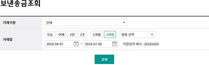 Step 1. 거래구분, 거래일 선택 후 조회 버튼을 클릭합니다.