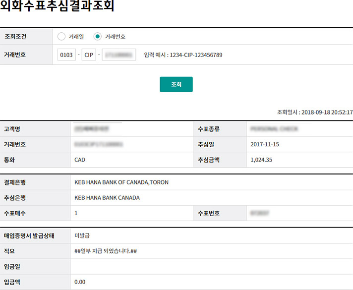 외화수표추심결과조회