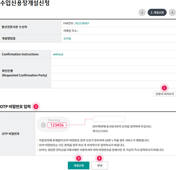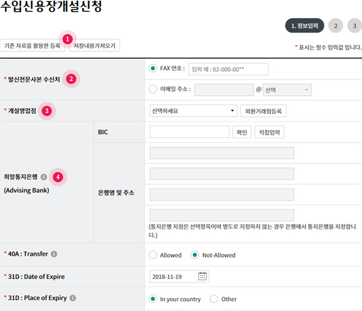 Step 2. 수입신용장 개설신청서를 작성