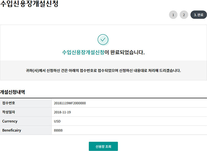 Step 7. 수입신용장 개설신청 완료
