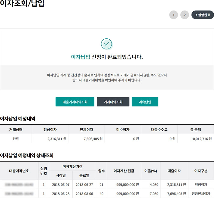 Step 4. 이자납입신청완료 화면입니다.