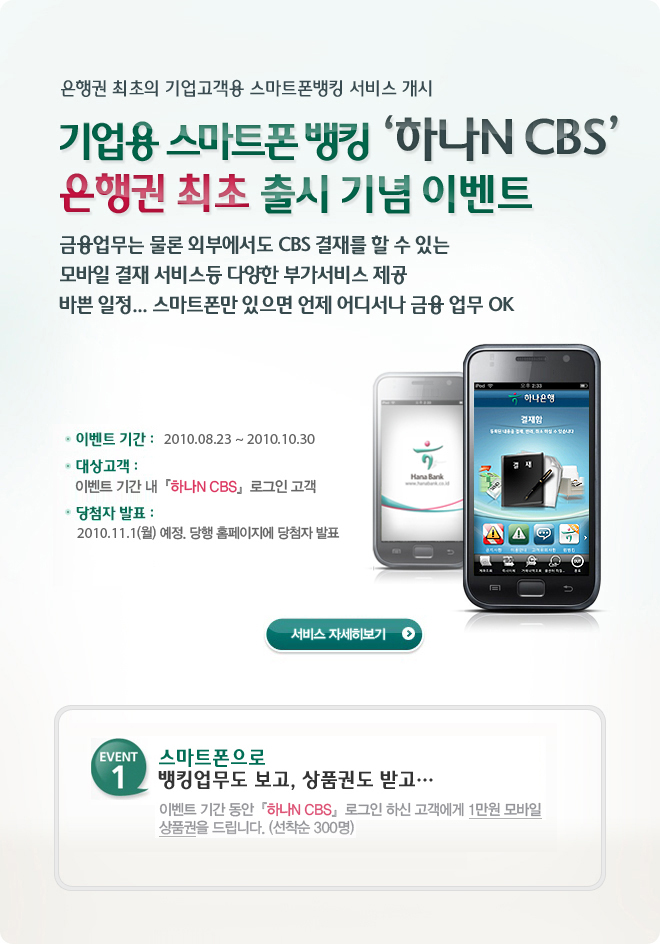 은행권 최초 기업용 스마트폰뱅킹 하나N CBS 출시 이벤트